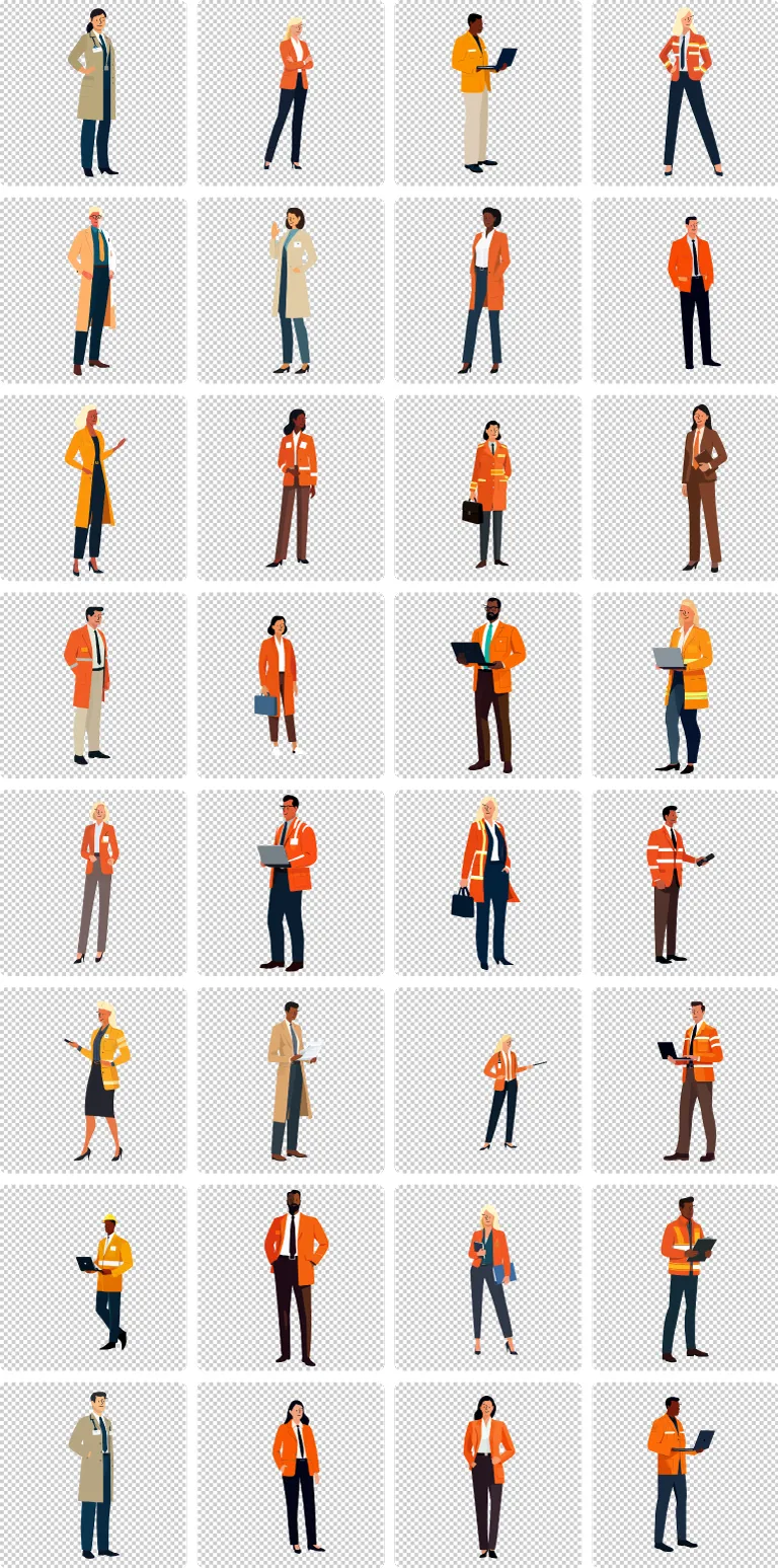 With a commercial-use license included, these illustrations provide flexible options for both digital and print applications. The neutral, professional aesthetic ensures they integrate naturally into corporate materials without overwhelming the design.