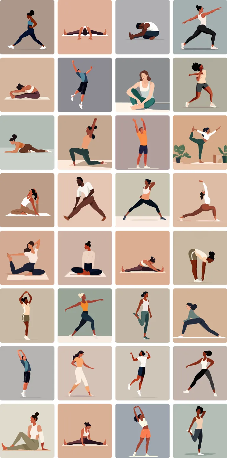 Stretching illustration pack (32 PNG)